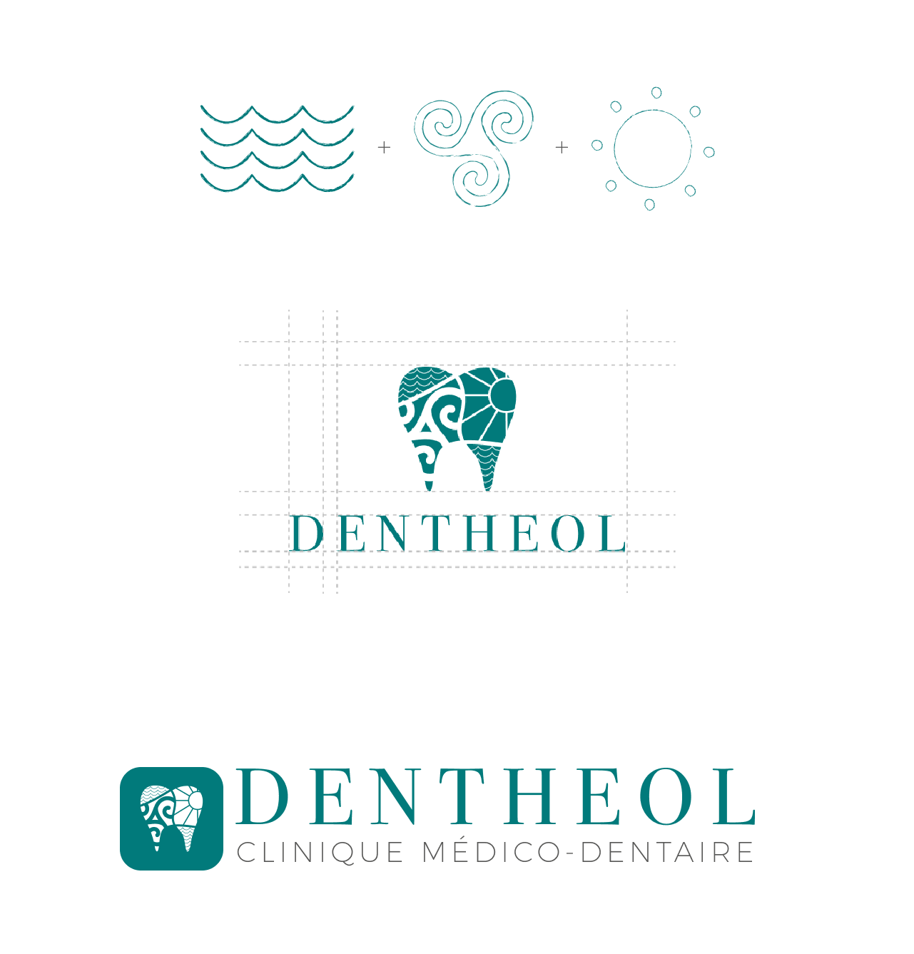Le logo conçu pour Dentheol marie l'univers dentaire et l'iconographie bretonne, offrant un design élégant et moderne qui reflète l'identité locale et l'expertise de la clinique.